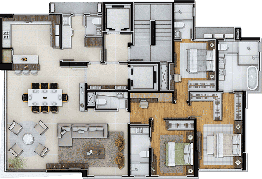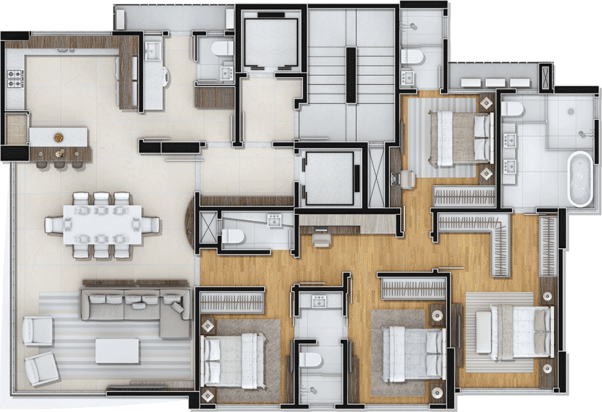 O aspecto clean e as linhas sóbrias dos apartamentos do AVANGARD ressaltam o estilo contemporâneo do empreendimento. Todos os acabamentos e revestimentos utilizados em sua construção foram cuidadosamente selecionados para não fugir desta proposta. São espaços amplos, confortáveis e aconchegantes, perfeitos para viver momentos de alegria, lazer e descanso.